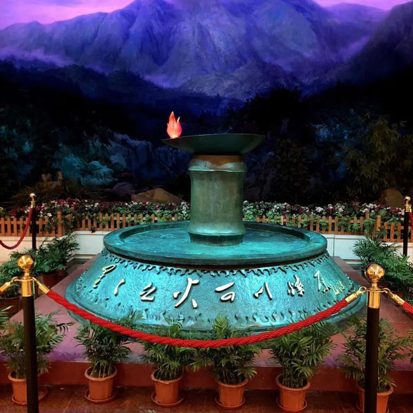 春雨纷纷,我们怀着探索革命之路的期待,来到井冈山革命博物馆。一进到馆内就看到红油灯,红油灯的“火”象征着星星之火,能把“旧道路”烧毁,寓意中国革命开辟一条新的道路,与灯下“星星之火可以燎原”相呼应。